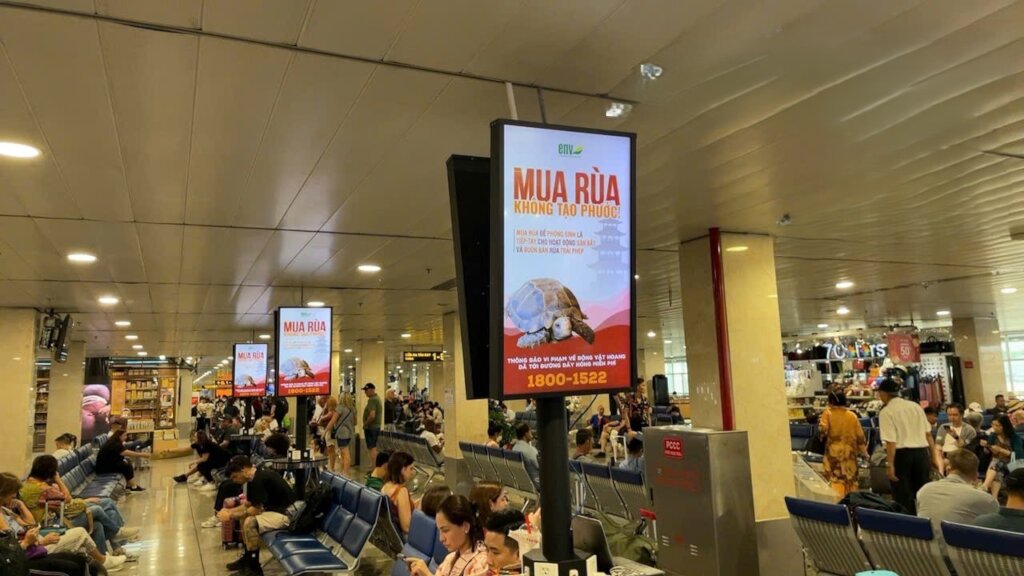If you traveled to Vietnam this year, you might have seen our turtle protection messages on hundreds of advertising boards at two major airports in Hanoi and Ho Chi Minh City.