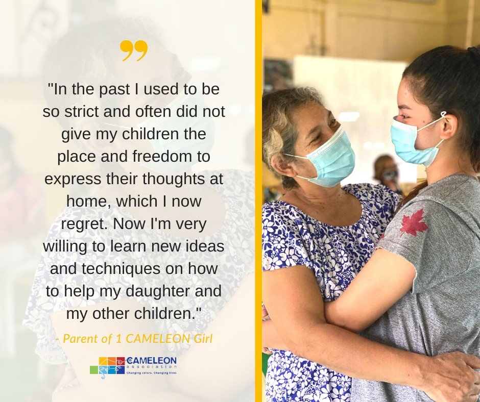 “In the past I used to be so strict and often did not give my children the place and the freedom to express their thoughts at home, which I now regret. Now I am very wiling to learn new ideas and techniques on how to help my daughter and my other children”