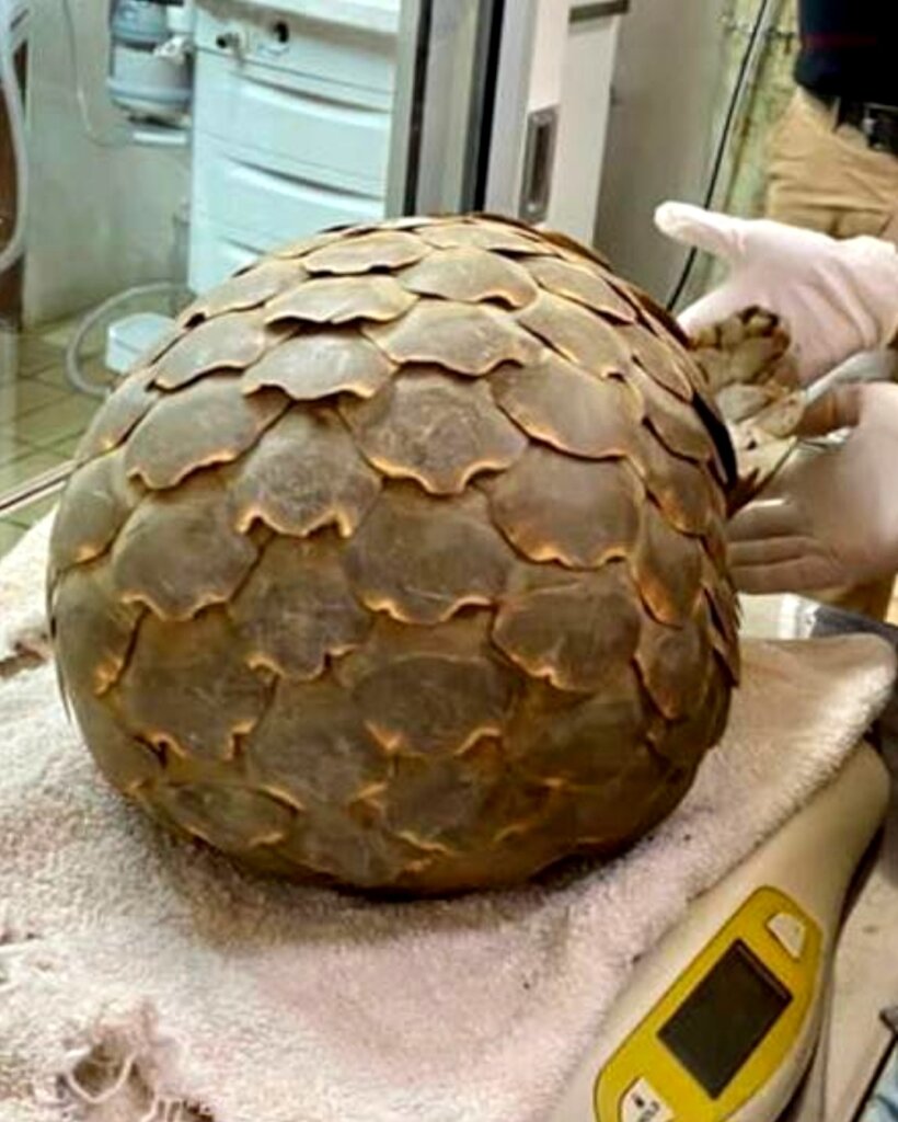 A very lucky pangolin was recently confiscated alive from wildlife traffickers.  The local team dropped everything to rush to secure the pangolin and ensure she could be released straight away.