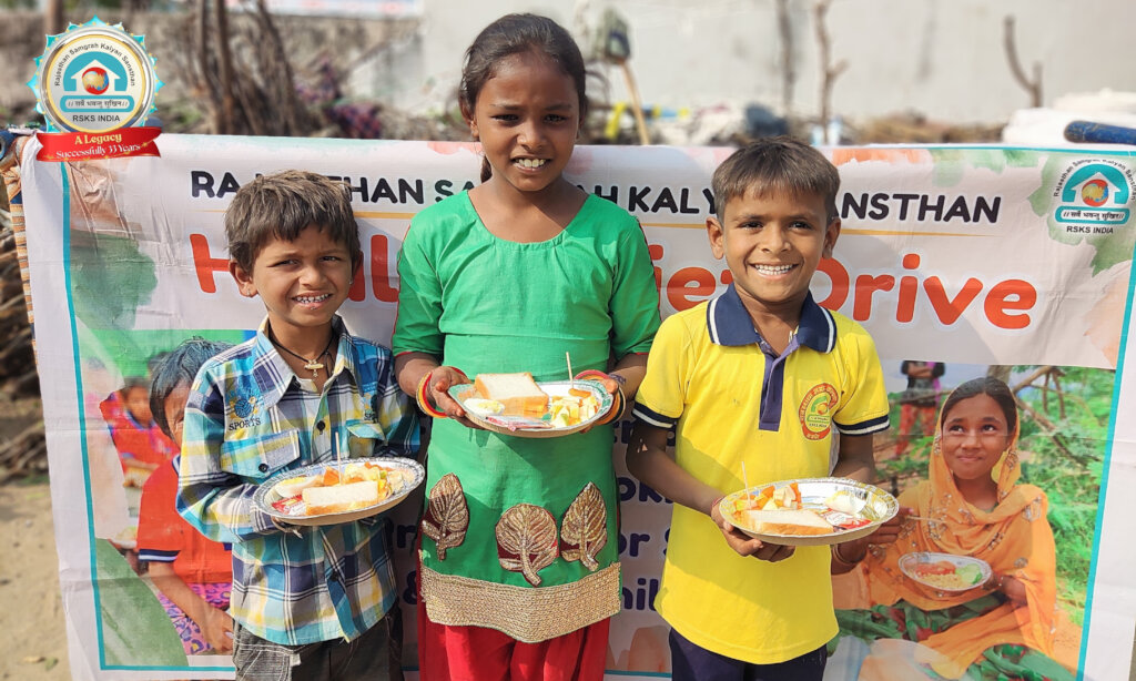 Rajasthan Samagra Kalyan Sansthan (RSKS India) is pleased to share a update from our recent Nutrition Support Initiative for slum and street-connected children. In response to the levels of child week health in underserved urban slums communities, our dedicated team organized the distribution of delicious, protein-rich meals across 12 identified slums. Over 300 vulnerable children directly benefited from this intervention. Each meal was carefully designed to address protein deficiency and included eggs, milk, bread, seasonal fruits, jam, and other nutritious supplements ensuring both nourishment and taste. The initiative not only addressed immediate hunger but also strengthened community trust and engagement.