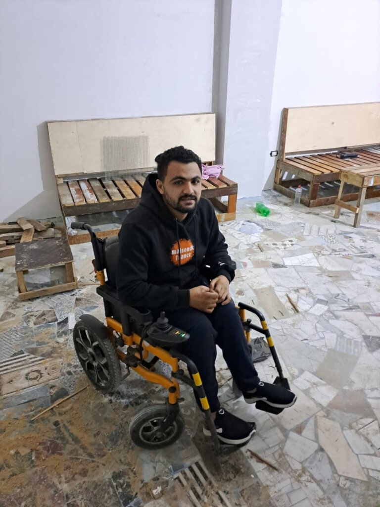 Mahmoud is a 23-year-old young man from Beheira Governorate. Four years ago, he became paralyzed as a result of an accident and completely lost the ability to move.