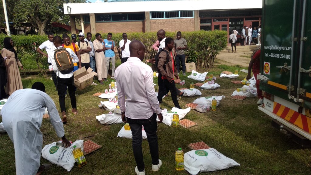 The project provided food to seven students from Malawi University for Business and Applied Sciences for one month. The food items received included 5kgs cream of maize, 5kgs rice, 1kg soya pieces, 1kg salt, 1 litre cooking oil, 3 tinned fish and 1 tray of 30 eggs.