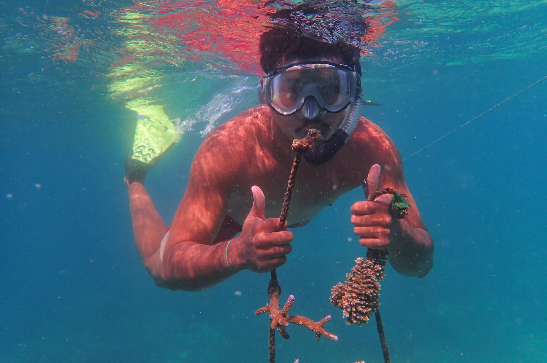 We collaborate with communities to rescue and grow heat-adapted corals in protected nurseries. Once strong, the corals are transplanted into damaged reefs, creating new fish habitats. At the same time, we work with local families to develop sustainable village chicken farming, giving them an affordable and reliable protein source. This reduces pressure on the reefs and provides new income opportunities. Our locally led approach ensures long-term success and community ownership.