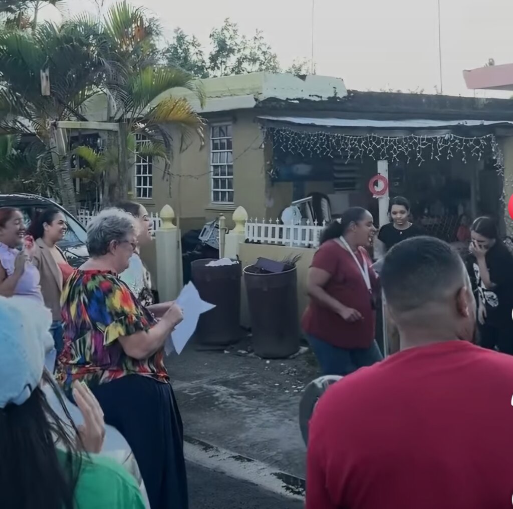 Together with the founder of P.E.C.E.S., Sister Nancy Madden, and staff members, Christmas parrandas (traditional puertorrican caroling) were held in the community. These parrandas in Puerto Rico are special because they bring the spirit of joy, solidarity, and cultural tradition directly to people’s homes, creating a sense of belonging and celebration. For those in need, parrandas offer not only festive cheer but also much-needed emotional and material support, reminding them they are not alone during challenging times.