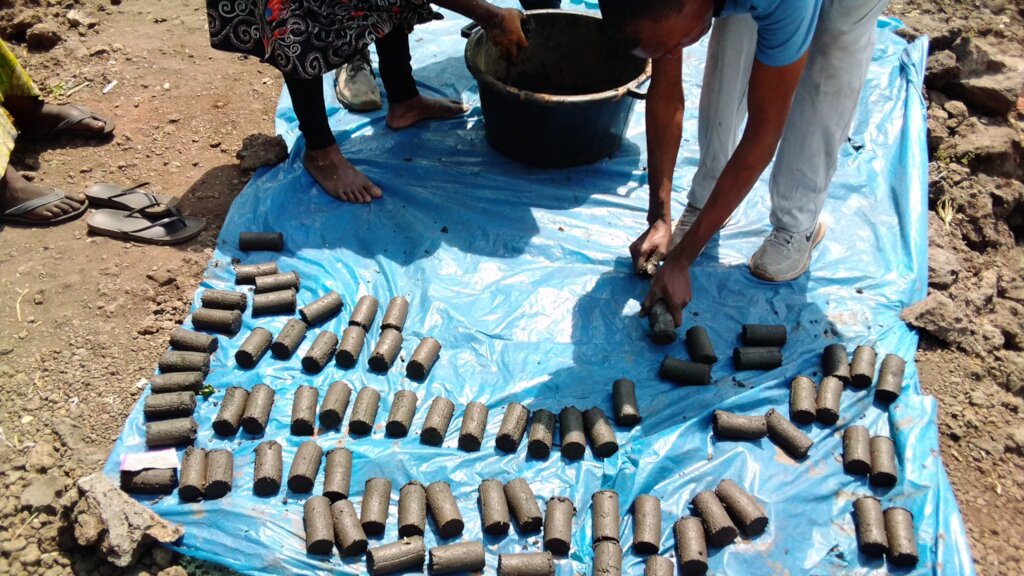 Currently we are able to make 300 pieces of charcoal every day and we can only work once a week because we do not have machines to dry them quickly, we do not have a big space, we do not have the necessary materials and equipment, and we do not have allowances for the volunteers among. Our intention is to produce 1,000 pieces of charcoal in five different places around Goma per week.