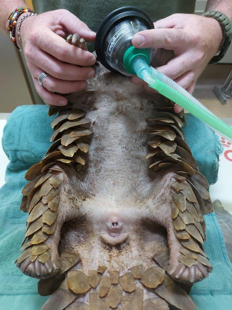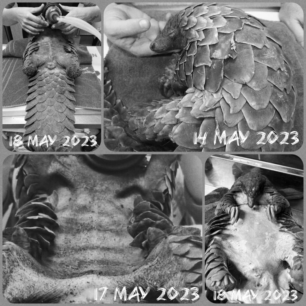 Recognizing the urgent need for care, both pangolins were swiftly transported to out vet at Provet Animal Hospital. However, upon arrival, it became apparent that the mother, who we've affectionately named Sarabi, lacked the ability to provide milk for her newborn. The little guy had already lost a significant 30 grams since his initial weigh-in, a substantial weight loss for a creature that weighs no more than a can of soft drink. Furthermore, his blood sugar levels were so dangerously low that the monitoring equipment couldn't even register a reading.