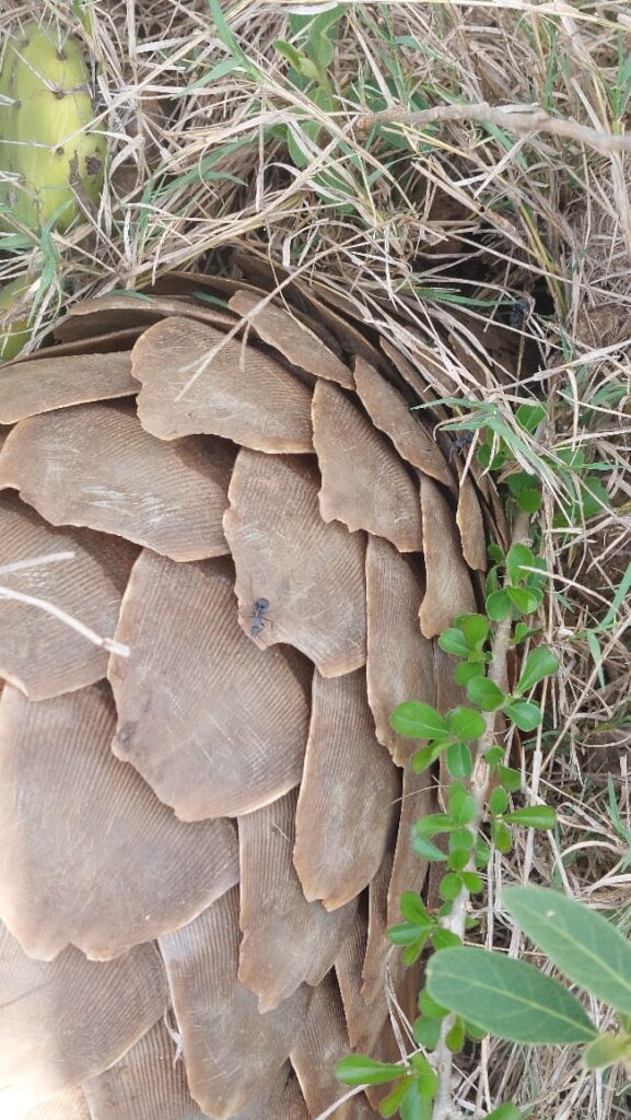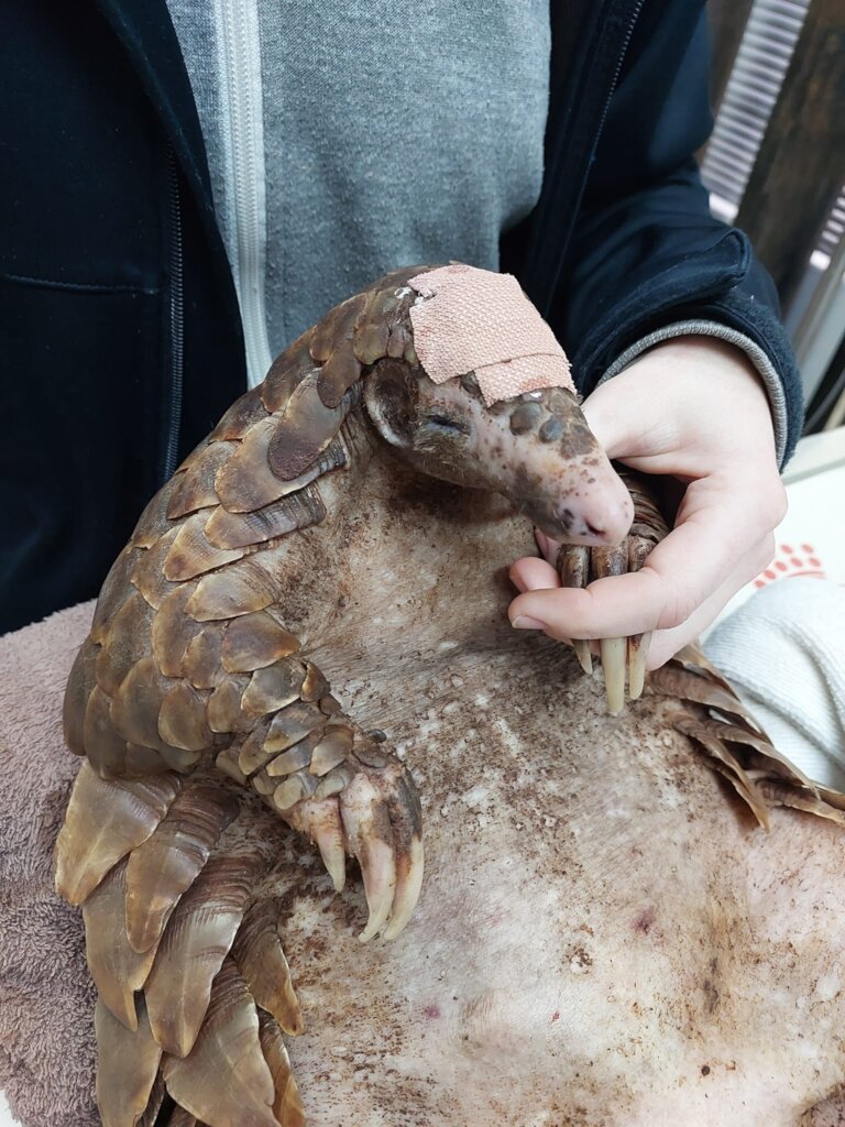 Sarabi herself bore scars from her ordeal in the hands of poachers who attempted to forcibly uncurl her with a spade while she was in her defensive posture. These cruel actions resulted in a severe head wound, which we now hope will heal quickly. Sarabi has since been relocated to our rehabilitation site and is responding well to treatment.