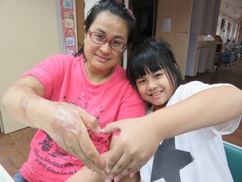 Ah-Hui endured over a month of hospitalization due to severe burns, facing life-threatening complications and undergoing skin graft surgeries. Her altered appearance caused her children to cry and avoid her, which deeply hurt her. Her husband took extended leave to care for her, while their youngest child was cared for by relatives. Overcome with guilt, Ah-Hui struggled with public stigma and intense physical challenges, including unbearable heat sensitivity and painful rehabilitation exercises. Despite the agony, she quietly endured the pain, determined not to burden her family.