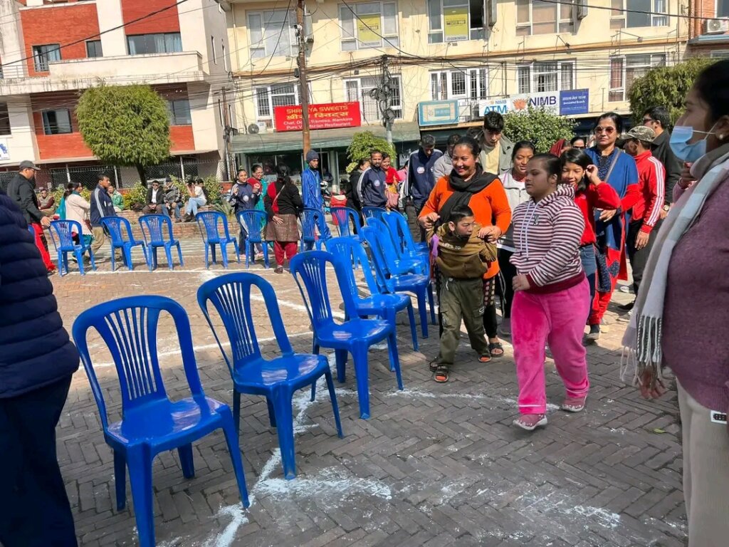 The organizers of our program gave out slime to assist people with physical disabilities in exercising. After that, they had an entertaining session for everyone who has participated. They planned a few entertaining games. For those with physical disabilities, they have Chess and Ludo games that they may sit and play. In the meantime, there is a game called "Blown Balloon Blast," in which players must tie a balloon to their leg, keep it there until the very end, and then use their leg to blow another balloon. They are unable to utilize their hand.Everyone had a great time playing the game. We then played a game called blind folding.The blind folding game was going to destroy the pot hanged. The players must try to break the pot with a long stick while blindfolded. This game is enjoyable as well.After a great time, our lunch was ready as well. Our lunch was shared by all. We finally had some refreshments for everyone who had come, including the parents of children with disabilities and the Youth Foundation Nepal, the organization that organized the event. Spending time with our parents and children with disabilities was a wonderful experience. They both need a vacation from work so they may enjoy themselves.