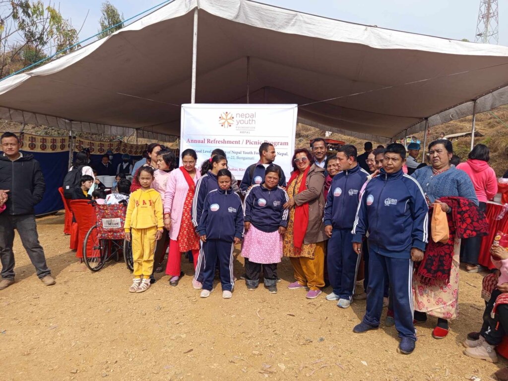 On Saturday, February 16, Nepal Youth Foundation, one of the Patan CBR cooperation partner, arranged a refreshment picnic program for school-level students and children with disabilities at Chobar, Kritipur. Our Patan CBR staff, parents, and children with disabilities were cordially welcomed to attend. There are 9 children with disabilities, along with their parents and Patan CBR staff. We gathered in Jawalakhel at precisely 8am in the morning. Others were on the verge of joining us in that program. We all boarded the Patan CBR bus and headed to our designated spot. As we arrived at our destination, we noticed that it was really lovely and that other people had come to have a picnic with their loved ones.
