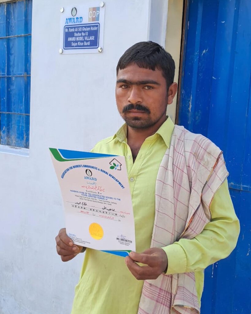 AWARD started its rehabilitation program with the flood-affected marginalized families of Khairpur, Sindh. The program began with 180 families from six rural areas of District Khairpur and later added 100 families. The families have been made resilient through disaster risk reduction training and Microgrants to encourage women to initiate businesses to get back to their lives; sessions to prevent dengue and malaria; sessions to discourage early-age marriages for girls; vocational training for young, dropout, unskilled girls; and reconstrucción or renovation of the damaged houses.