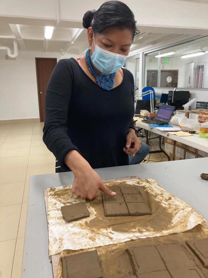One of the people working on this study is Yadixa Mayín, an anthropology student at the University of Panamá. She has been working to create a reference collection of fingerprints that can be applicable in archaeological studies. The work consists of making clay plates with a thickness of between 0.5 and 1mm from clay soil found near the El Caño site. These clay plates were marked and measured and will be dried for at least five days before firing. Once fired, they will be measured again and the results of the plastic (unfired) and fired plates will be compared. This analysis seeks to evaluate the shrinkage percentages of the clay and the results will be used in the study of archaeological pieces from El Caño.