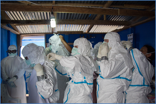 Staff safety and competence are of primary importance in this outbreak, as out of 620 health workers infected with Ebola in West Africa, 345 have died. In Liberia, Ebola is called “nurse killer” because of the number of doctors and nurses who have died from the disease. The region can ill afford this loss. Liberia and Sierra Leone, with only 187 doctors in 2012 for a combined population of 10.2 million, have a critically small health workforce. (By way of comparison, Croatia and Denmark together, with the same population, had 31,287 doctors in 2012.) Training is key. To rapidly scale up the number of frontline health workers with the skills equipped to fight this disease, in early November we began offering our standardized Ebola training course, the Multi-Agency Training Collaborative Curriculum (MATCO), to members of International Medical Corps and partner organizations. This 7-10 day course draws on expertise and technical content provided by the World Health Organization, Centers for Disease Control and Prevention, and Doctors Without Borders (MSF). Topics include the use of personal protective equipment, patient transport, admission, triage, psychosocial support for staff and patients, quality assurance, infection protection and control, case management, and management of the dead. To date, we have trained more than 250 frontline healthcare workers, 130 workers in Bong County, Liberia and 120 in Lunsar, Sierra Leone. Certification requires an additional four weeks of hands-on training in an Ebola Treatment Center for non-clinical trainees. International Medical Corps has plans to make this curriculum and materials available online, with open access.