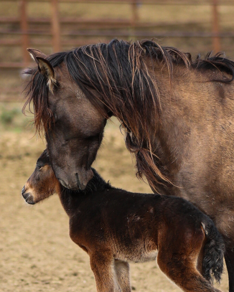 Although RTF uses a non-hormonal and reversible birth control agent to keep our population stable, there is an occasional mare who is a non-responder to the program. These are happy “accidents”—however, no one could be sorry to see Choctaw mare Mariah’s new colt "Chahta Tushka appear! He is super curious and already attached to his older brother Talako, who is very sweet and patient with him. The Choctaw ponies are a threatened strain of horses who arrived to America in the 1500’s and carried the infirm on the tragic Trail of Tears.