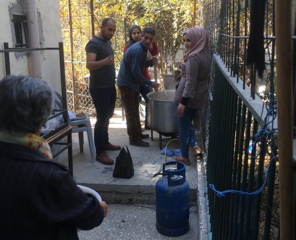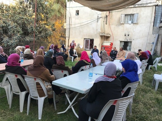 Arroub camp has around 10,000 inhabitants and is located directly along main road 60 connecting Jerusalem with the southern West Bank, with several military watchpoints surrounding the camp. The area is very tense and dangerous as different Jewish-only settlements have been established in the valley, greatly limiting movement and access to for example agricultural fields for the residents. Arroub camp has one of the highest numbers of army raids of all refugee camps in the WB; consequently clashes between residents and the army are frequent as well as the excessive use of tear gas, sound bombs and plastic-coated metal bullets by the occupation army. As with other camps in the West Bank, Arroub is characterized by high unemployment, overcrowding and poor living conditions. Many refugees continue to live in substandard shelters. Now, 20 women are frequently meeting for training and connection, while 20 green spaces are flourishing and producing tomatoes and cucumbers. The community is also benefitting from social events, community meals, and excursions.