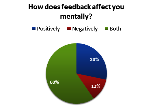 When the employees were asked if they had ever received feedback at work, 89% of participants shared that they receive feedback while the rest of the 11% shared that they do not receive feedback. Another survey showed that 53% of the participants often receive feedback while 47% felt that they rarely receive feedback. When the employees were asked from whom they receive feedback, 58% of employees responded that their supervisors give them feedback. Moreover, 34% of the workshop participants mentioned that they receive feedback from their colleagues, 4% participants mentioned that they receive feedback from HR, 3% participants shared they receive feedback from the Community people they are serving and 1% of them mentioned that they receive feedback from the beneficiaries.