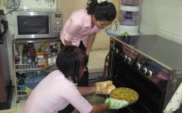 Mother’s Heart funds its women to attend the training programmes of Open Arms . Putting its motto “From Training to Enterprise -From poverty to Freedom” into practice, Open Arms trains under privileged young people in a variety of occupations. The Mother’s Heart women have just completed a  6week cooking and cleaning course where they learnt a range of skills, from customer service and producing Western meals to personal hygiene and keeping a restaurant clean.