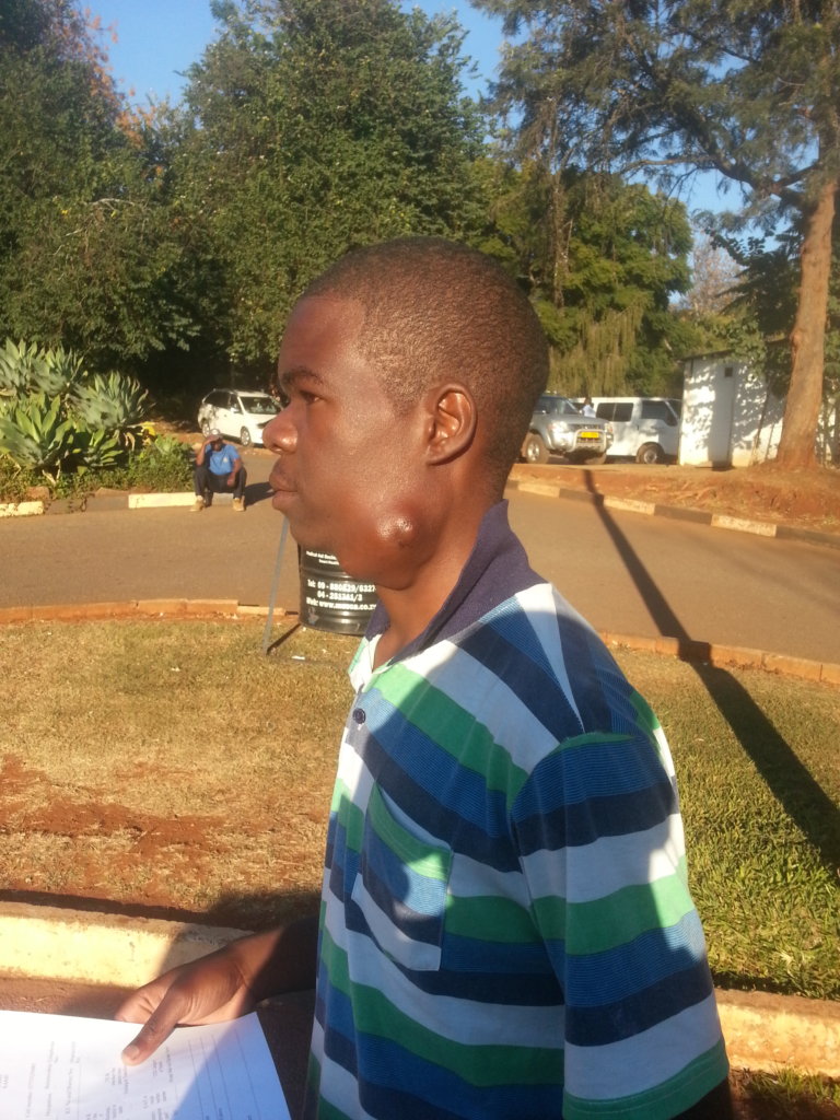 Michael (not his real name) is an Upper 6 student at Shamva High School. In February 2016, Kidzcan Staff visited Shamva District and spoke about childhood cancer. The crowd was shown a lot of pictures and they were told about the different types of cancers in children. A member of the community who attended the Awareness Campaign remembered a boy from his village who had something similar (a mass growing on his neck) to what they had been shown during the campaign. Below is his testimony:
