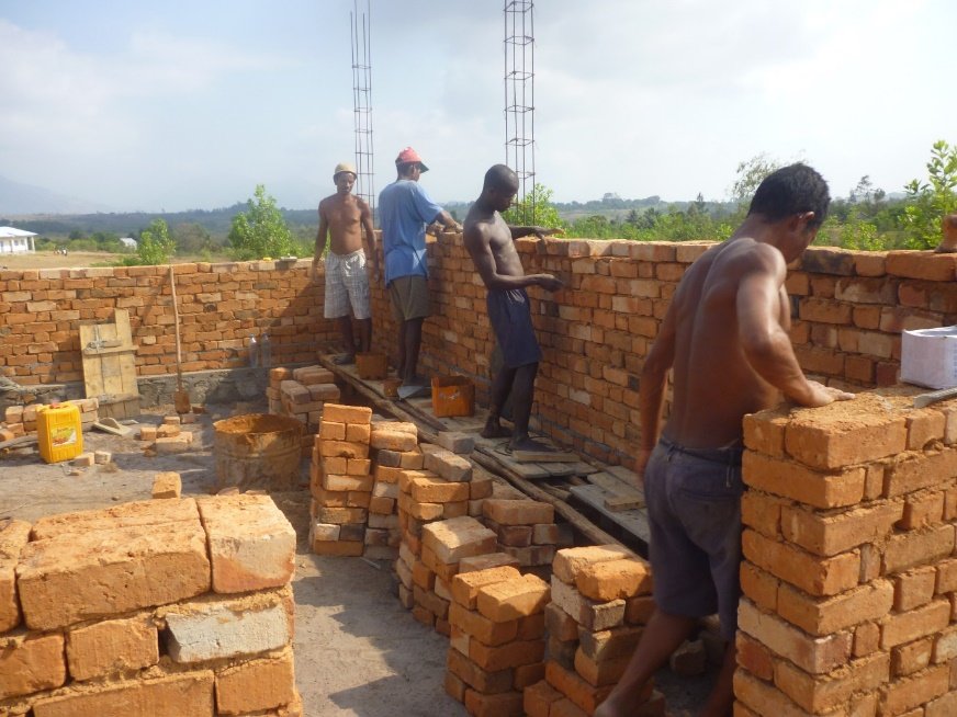 Since the traditional groundbreaking ceremony for the new school building, the local community has helped to clear the land and help source some building materials locally. International volunteers, our permanent construction team and construction workers from Manambaro have brought the building along a great deal.