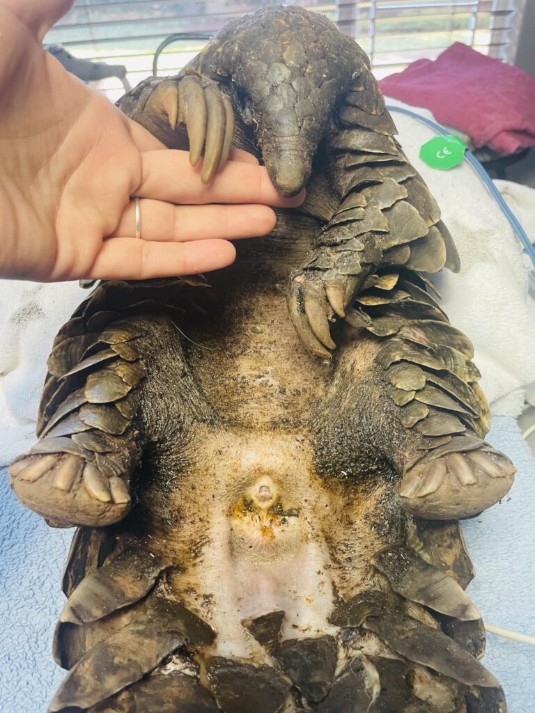It's been a rough start to the year, and we've got another tough rescue story to share. Lundi came to us in early January, but we can't give you all the details of her rescue just yet since the investigation is ongoing. What we can tell you is that she had been held by her captors for quite some time and was in a terrible state when we found her. She had severe pneumonia, biliary issues, dehydration, and was painfully emaciated. Not to mention, she had a nasty skin infection under the scales of her tail and some pretty hefty wounds on her feet. Once we stabilized her, we sent her for a CT scan to get a better look at her condition. The results weren't great – she had granulomas in both lungs and a big aneurysm in the main artery leading to her lungs. We started treating her, making sure she got plenty of protein through daily tube feeds to kickstart her gut again. We also took her on short foraging walks to stretch her legs and let her feed naturally. For a few days, things seemed to be looking up. She was showing interest in foraging and her pneumonia was getting better. But then, out of nowhere, she took a turn for the worse. Within just 48 hours, it was clear she had lost her fighting spirit. The biliary issues hit her hard, the infections in her wounds and lungs got worse, and her gut completely shut down. Another CT scan confirmed our fears. Despite our best efforts, her little body was giving up. It was a tough call, but we had to end her suffering and let her rest. It's been a rough ride for everyone involved. Lundi really touched the hearts of those who worked so hard to save her. But at least now, she's no longer in pain. Rest easy, little Lundi.