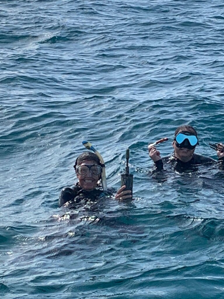 In May and again in August this year, we carried out dedicated dolphin surveys in the Sea of Abaco. Across 16 encounters, many included mother-calf pairs which is an encouraging indication of the resilience of this local population following hurricane Dorian. It is critical that we continue to monitor the health status of these young dolphins as we know that calf mortality is high in the Sea of Abaco. Alongside photo-ID work, we deployed and retrieved our acoustic recorders that are tracking ambient noise (boat engines mostly) and its impacts on dolphin presence.