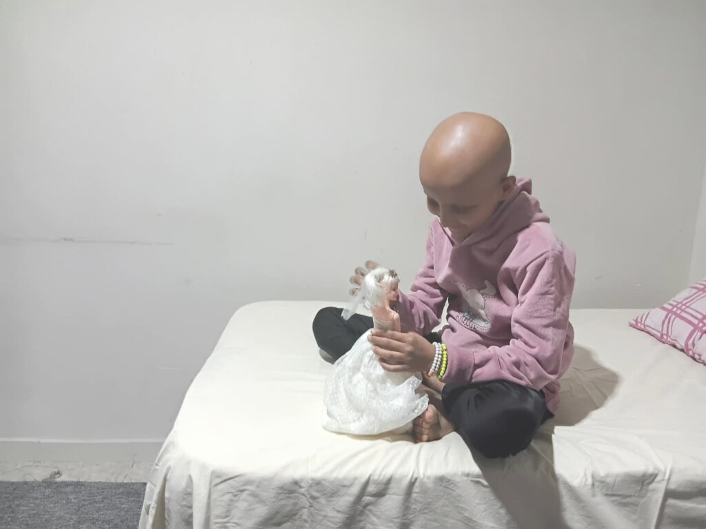 The illness has drained her small body, and the treatment has taken her hair.