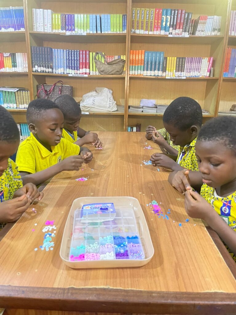 Young learners participated in a craft activity, creating beaded bracelets.