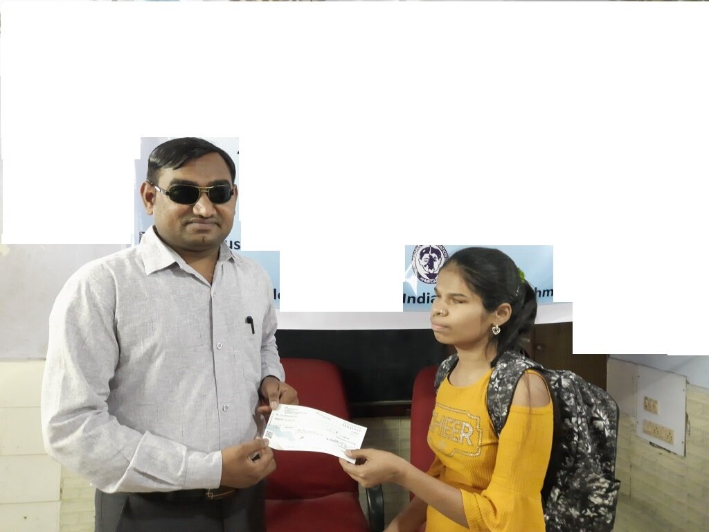 We are deeply inspired to share the journey of Ms. Varsha. Born with congenital blindness and raised in a financially challenged family, her father works as a daily wage laborer in agriculture. Despite these hardships, Varsha has shown remarkable determination. After completing her schooling at a blind school, she is now pursuing a Bachelor’s degree with Sanskrit as her major.