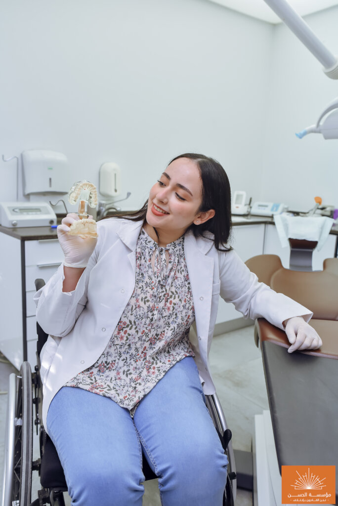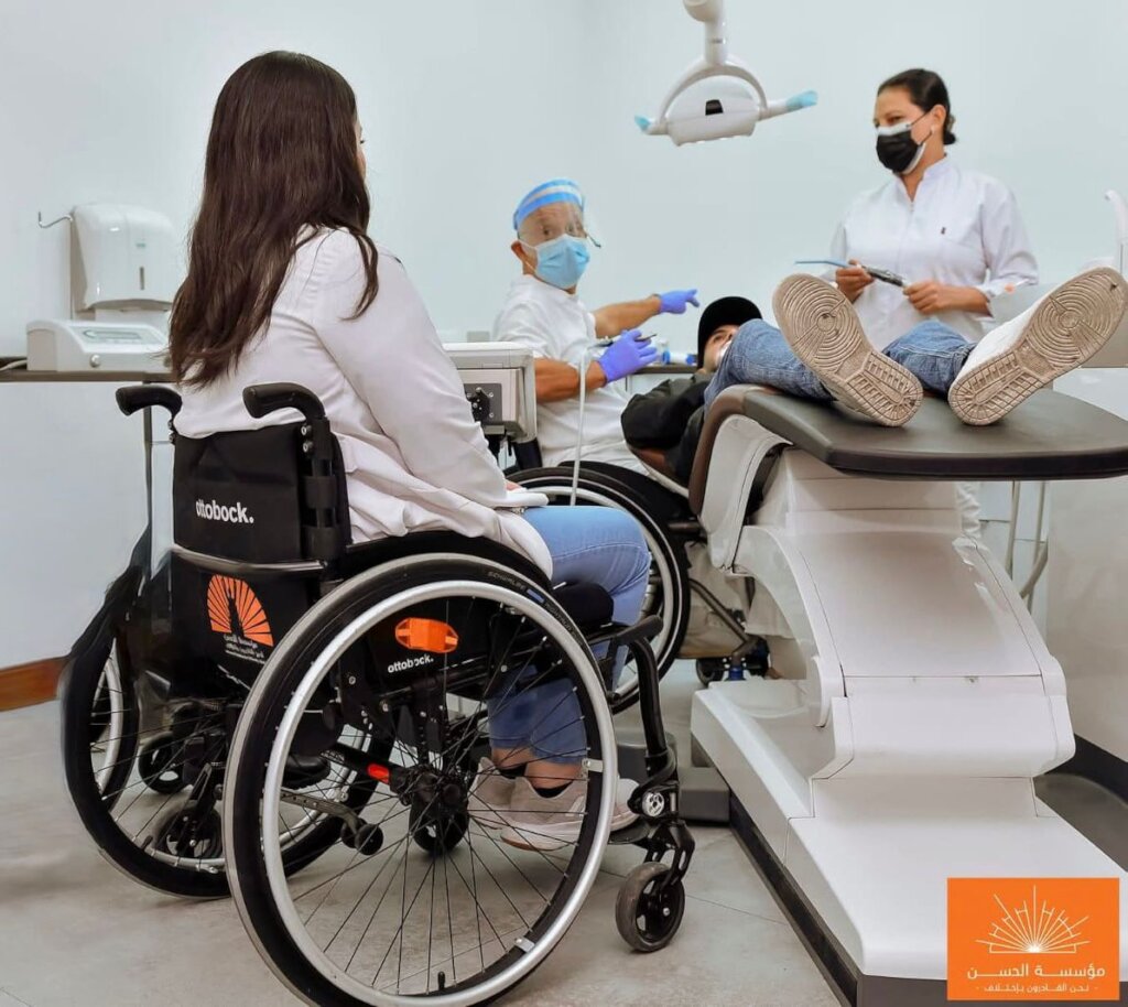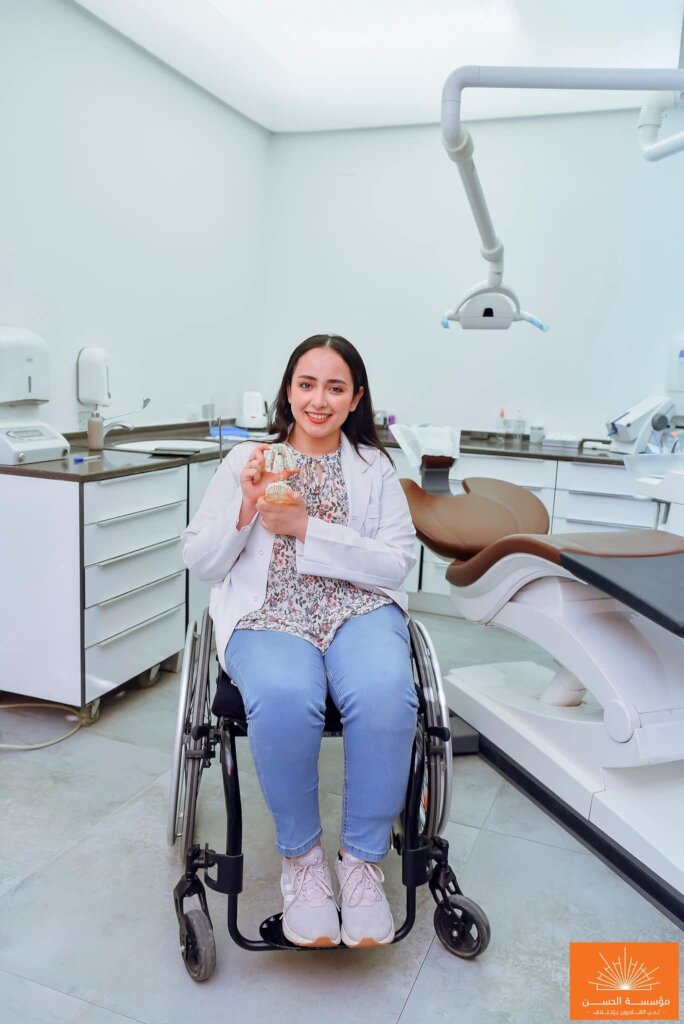 But in 2018, everything began to change. We met Asmaa through the “Customized Wheelchair” project, where she connected with the Alhassan Foundation team and slowly began to rebuild her confidence and strength. From the process of taking measurements to receiving her wheelchair, Asmaa impressed everyone with her courage and unwavering spirit.