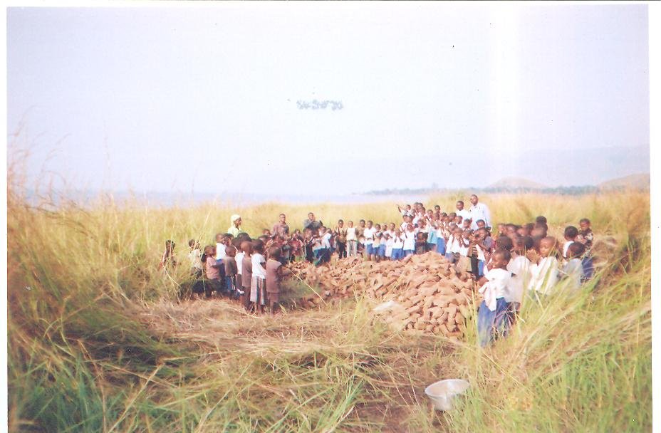 20,000 bricks are ready to erect the walls of our first block. On bricks arrival at Kazimia , an immense and extraordinary joy erupted in the village ! The Kazimia population transported , itself, the bricks from the port of arrival to School site !