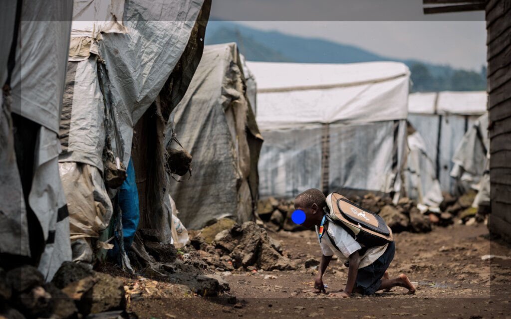 My name is Bandibana, I am 13 years old, I have a disability of 2 legs. For a year I have been living in Lushagala Internally displaced persons camp (IDP) with my uncle Sengi near Goma. I did not know to read or write because in my village in Bwito territory before war, everyone went to the fields and children to school. It was not possible for me to go to school because of mountain. I stayed at home.