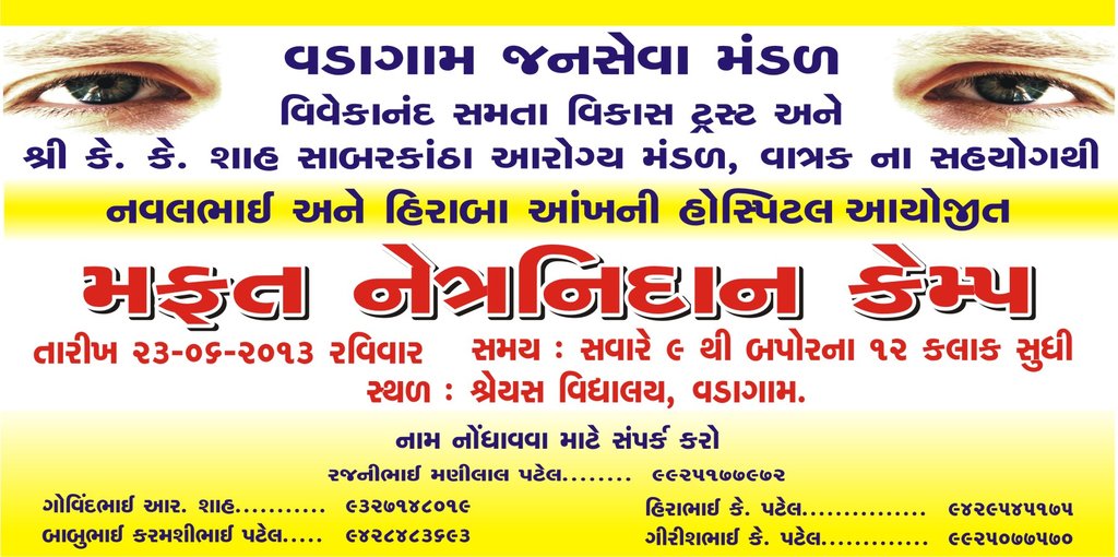 Motivated from Shah couple, Mr Rasik Shah of Gabat, now residing in New York and his family members came forward to support a similar camp at Gabat, another village in Sabarkantha village which has sent a large number of NRIs to the USA. The success of this camp motivated Mr. Ramesh Shah, Mr. Vijay Shah and many other residents of Gabat to come forward and support this initiative. With the success of a few camps in the district, the members decided to launch the campaign "Cataract Free Sabarkantha". To promote this campaign in a systematic manner, the group has formed a public charitable organization names as "Samata Vikas Charitable Trust".