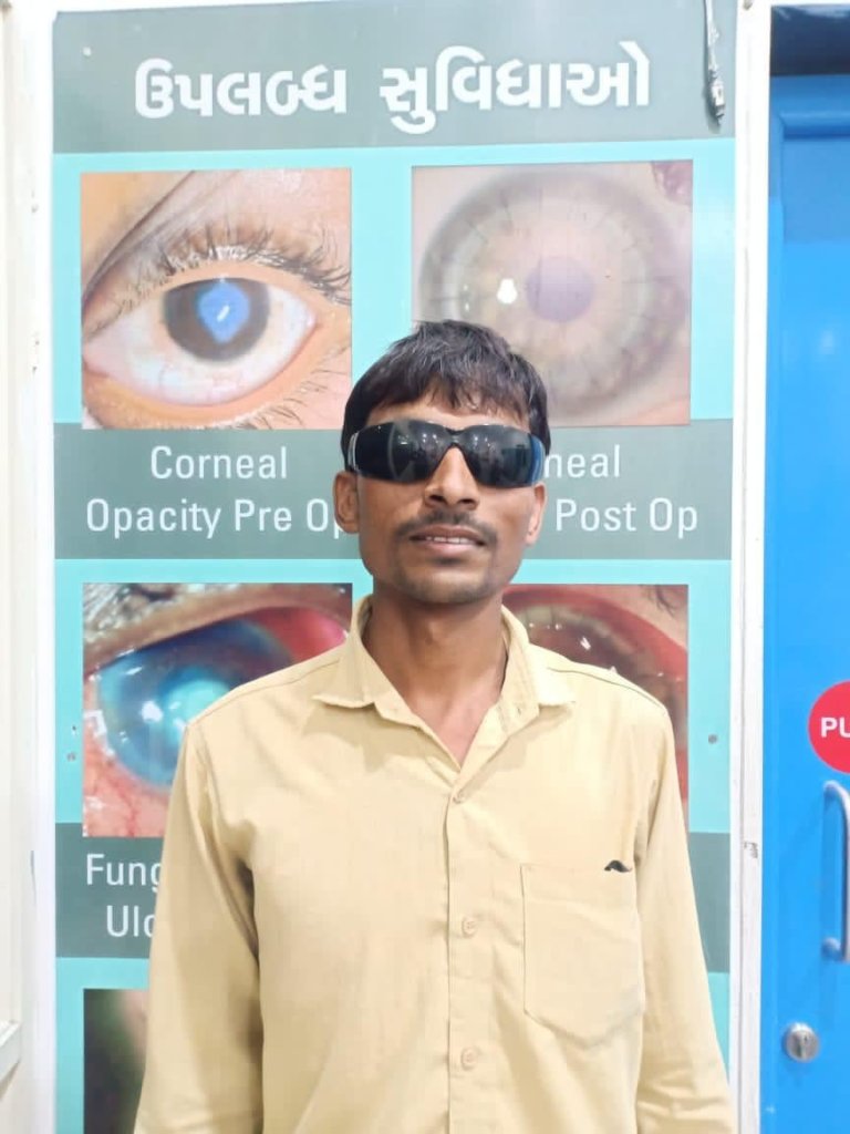 With this note, I would like to share a very interesting story of Himmatbhai. He had suddenly realized that his vision in left eye somehow affected, was blured. His left eye was red, and watery eyes. He came to our eye hospital for diagnosis and treatment purposes. He was diagnosed Pseudophakic Bullous Keratopathy with gross descements membrane tear was diagnosed. He had two cataract surgeries earlier. He was advised for DESK (Descements Stripping Endothelial Keratoplasty). He undergone for this surgery at our hospital, and his vision recover and earlier symptoms like watery eyes and redness in eye is also disappeared. He was so happy with treatment, and thank the donors who sponsored his surgery.