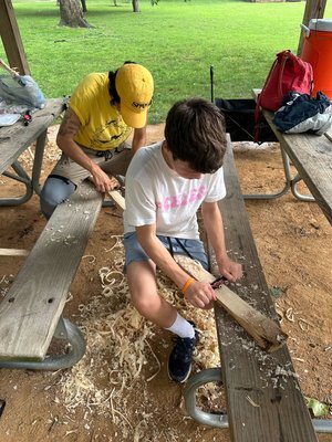 Each location has a unique topography that allows us to tailor the guilds to available resources. In Wake County, which has many creeks, campers often build rafts, go fishing (primarily catching and releasing crayfish), and practice dip netting. In Durham, we focus more on bushcraft skills like fire-making, whittling, and basket-making. Orange County offers a blend of the activities of the other two locations.