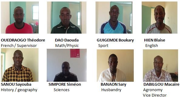 Front left to right: Banaon (husbandry), Theodore (French), Emmanuel (Director LAP / ASAP), Macaire (Agronomy and vice director), Daouda (Math)