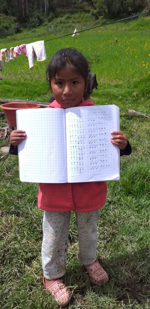 Joselyn is one of these girls, in the 4th grade and has to travel to her community for social isolation. From the village she did her assignment on art and culture. She had to create a song, "I love you so much" for the period of stay home in Cusco. Here she is singing and dancing with her brother, her song in Quechua: