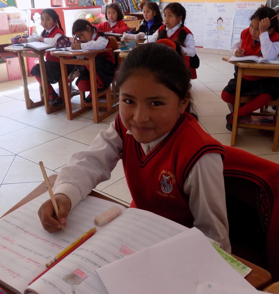 Parents create a school vegetable garden each year taking advantage of the rains and supply the school meal program with many fresh vegetables that grow in the fertile soil of rural Cusco. They planted and then returned to harvest the corn, potatoes, cabbage and other vegetables.