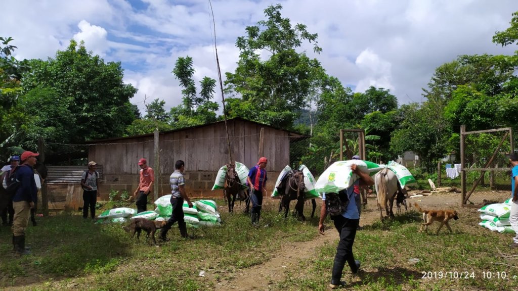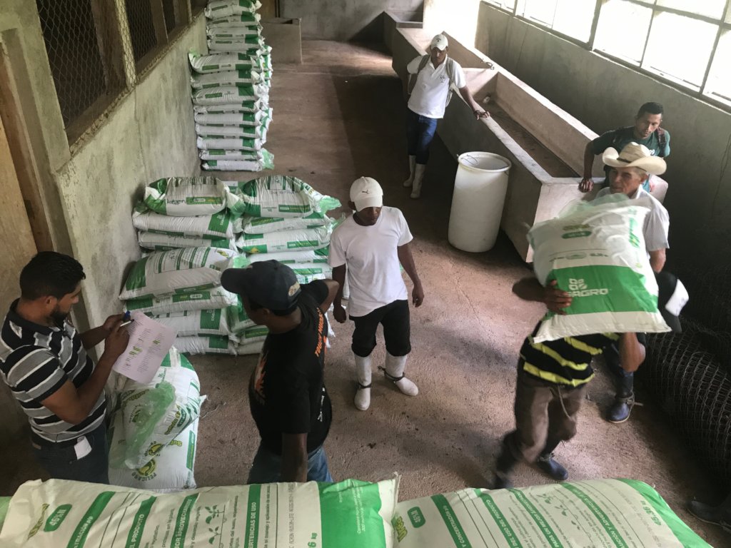 I had the privilege of being at the cooperative the day the agricultural inputs were distributed to the farmers. We arrived at Los Chiles early and already dozens of farmers were milling about, eagerly awaiting their supplies. Some had arrived on horseback, and a slew of horses were tied to trees outside the large building. Most came together on a bus, per the instructions of their community leader. The energy was palpable, and the operation was even more organized than I’d expected. Each farmer had a specific amount he or she would receive and signed for their loan once the repayment process had been explained to them. Names and communities were clearly labeled on each product, then loaded into the bus.