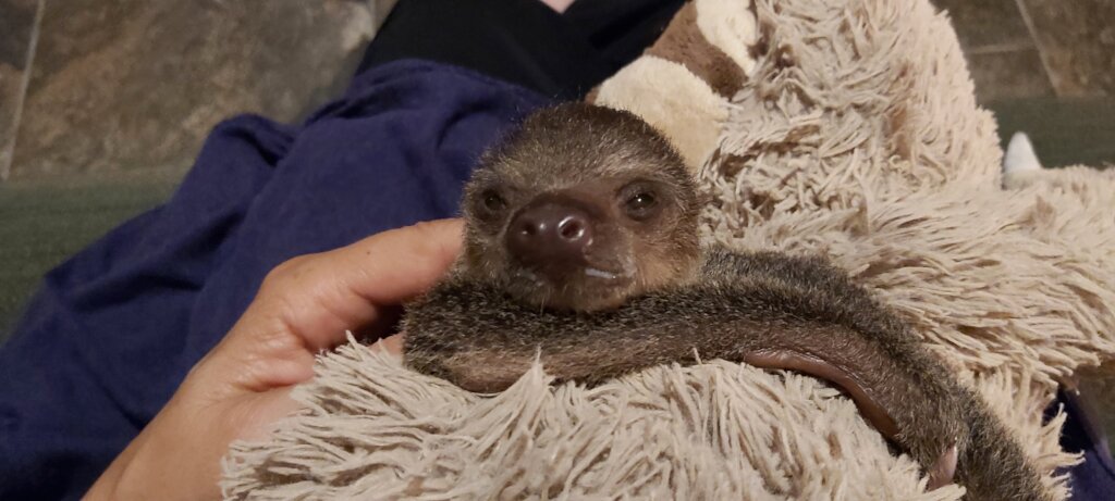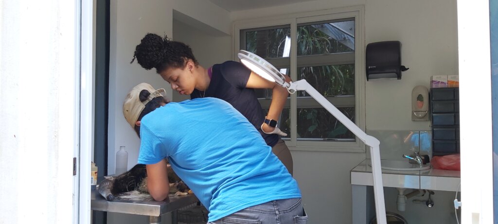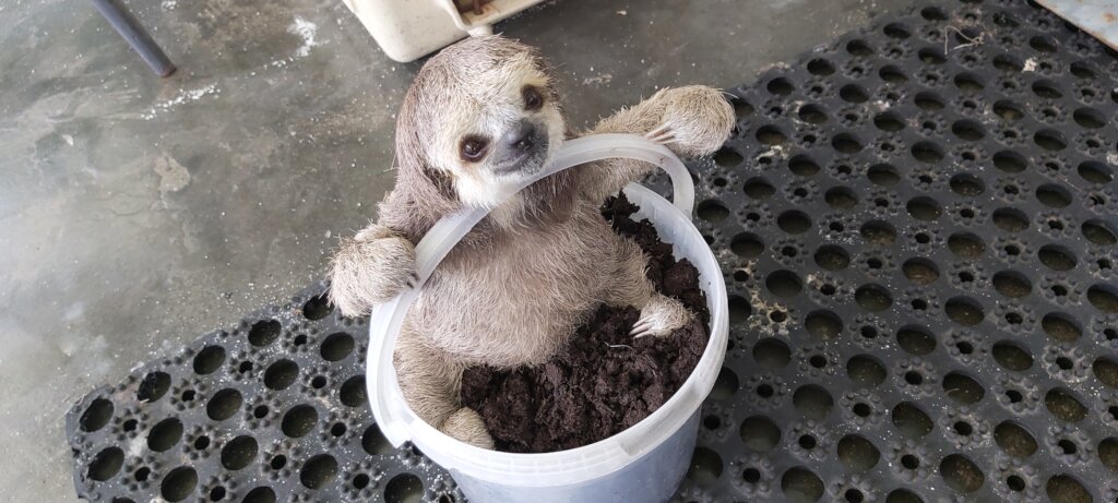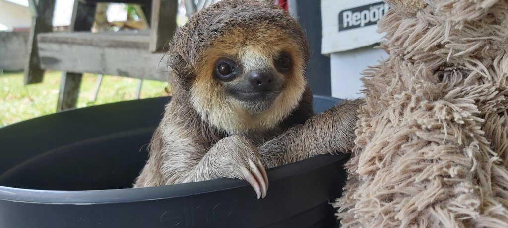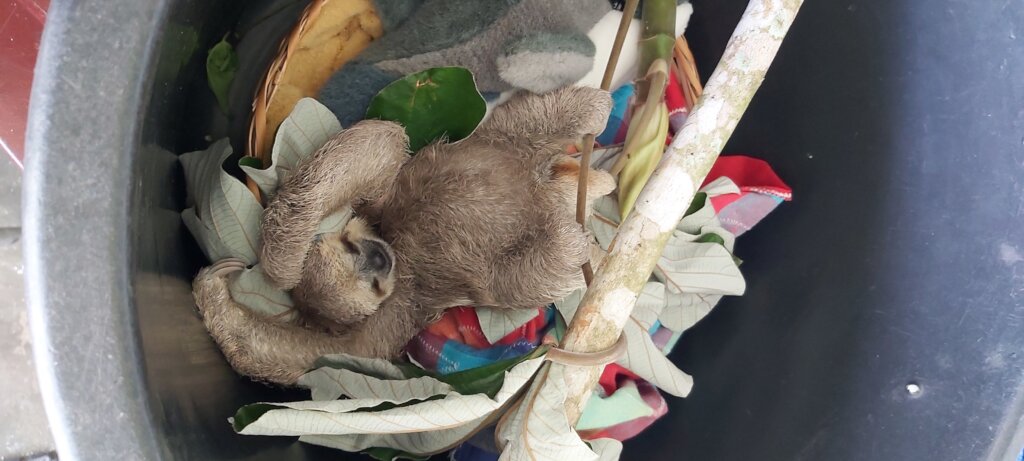 One thing we must mention is our amazing collaboration with the fire department. We had a particularly challenging rescue recently when a three-fingered sloth had fled in a pole connecting power lines to the houses. Despite our best efforts standing on a long ladder, we were unable to retrieve the animal, so we called in the fire department. With two ladders against the pole, and the assistance of a fire woman, we finally brought the sloth down. Unfortunately, two of his claws had been bitten off by a vicious dog, leaving him severely distressed. However, we brought the animal to our vet for treatment and are happy to report he is now on the mend.