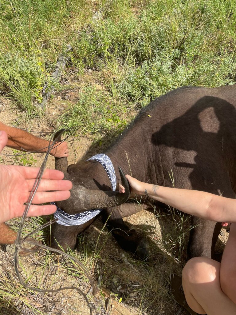 A young female buffalo got a second chance at life, and it was all thanks to a team effort fueled by your contributions. A researcher in the field spotted her with a wire snare wrapped tight around her neck, a ticking time bomb that could’ve led to infection, unbearable pain, and a slow death if left unchecked. Time was critical, and that’s where Hope for Wildlife Helicopter Services came in, generously donating a chopper to get the rescue team to her fast. After a quick 30-minute flight, they tracked her down, sedated her safely, and got to work. The team snipped away the snare in minutes. Amazingly, it hadn’t cut into her skin yet, so with a reversal drug, she was back on her feet, free and unharmed. A clean rescue like that? It’s rare and it’s because of you.