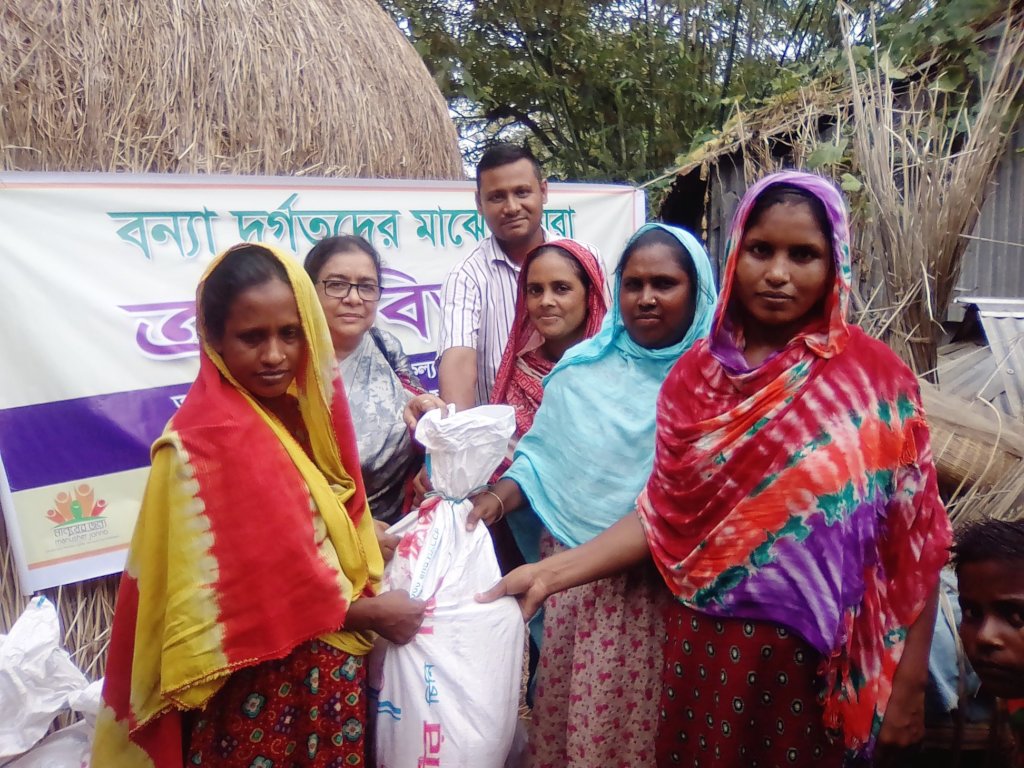 Present situation of flood, heavy rainfall and water from upstream started from 9th July 2019 flooded 21 Districts of Bangladesh. Among the affected districts, Sunamganj, Kurigram, Bandarban, Gaibandha, Jamalpur, Tangail, Siranjganj, Bogra and Lalmonirhat. Currently at 23 points of different rivers in north and north-western part of the country are flowing over danger level. According to report of Ministry of Disaster Management and Relief (dated 16 July), water level in most of the river will continue to raise for next 48 hours inundating wider areas. In our working areas are during the Period from 10th July 2019 the heaviest flood recovered in 100 years have struck the peoples in Jamalpur district of Bangladesh. Current Flood water has been blowing were over 155 CM. in danger range in our working areas. Rain and flood water has ruined the life of people in many villages in our Project areas of Dewangonj and Islampur Upazilla under Jamalpur district of Bangladesh.