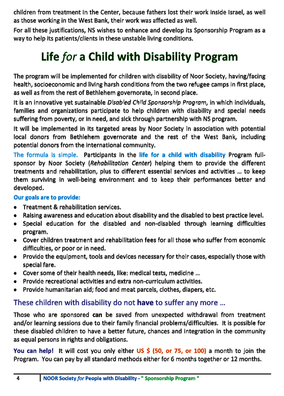 We urgently call on donors to support this project by sponsoring children with disabilities.