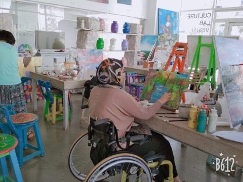 In Arts project, a great milestone has been occurred. Ahmed is one of our famous great artist. He is a poet and writer. He is 28 years old. He translated a book, into Arabic, called “Life on Wheels”. Ahmed aimed to translate this book to target local community and encourage them to learn more about physically challenged people and how they can adapt to their condition and develop a positive attitude towards it.