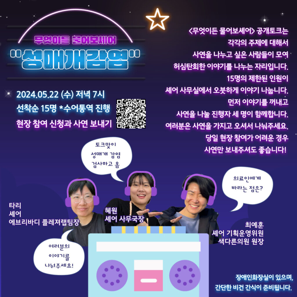 <Talk & Share>, the serial program to provide practical and useful information related to sexual experiences has been held every month since May 2024. (see more info about <Talk & Share> program on our previous report)