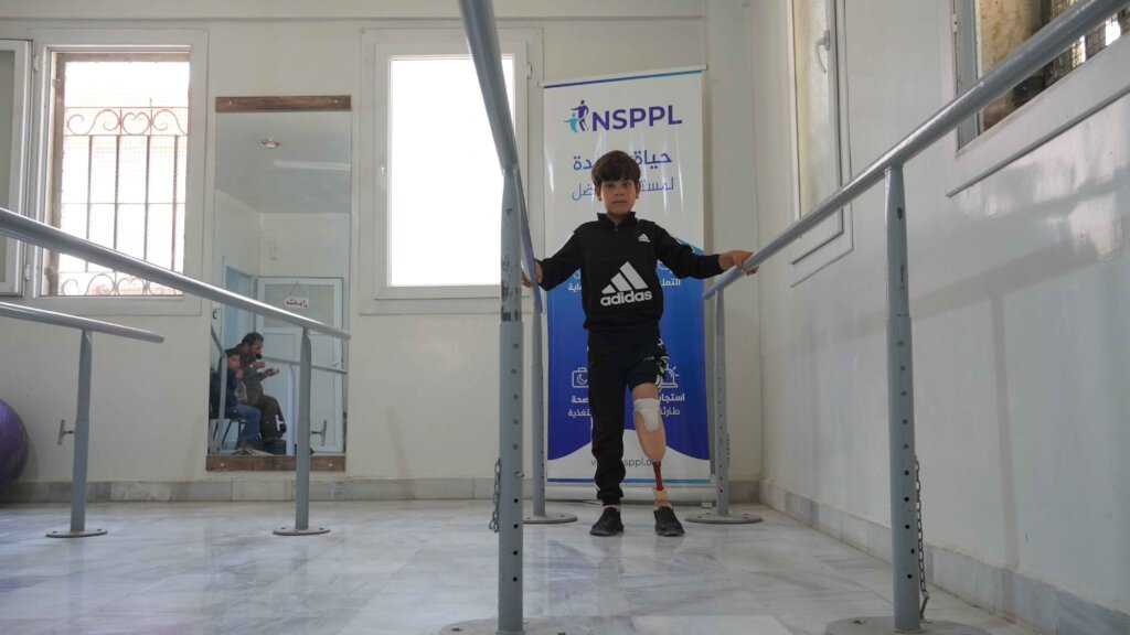 At the Syrian Prosthetics and Rehabilitation Center in Al-Bab, Samer received a full medical assessment and was fitted with a custom-made prosthetic limb. Under the care of a dedicated medical team, he began supervised physical therapy and gait training sessions. Today, Samer is gradually regaining his balance, learning to walk again, and most importantly rediscovering the joys of childhood play.