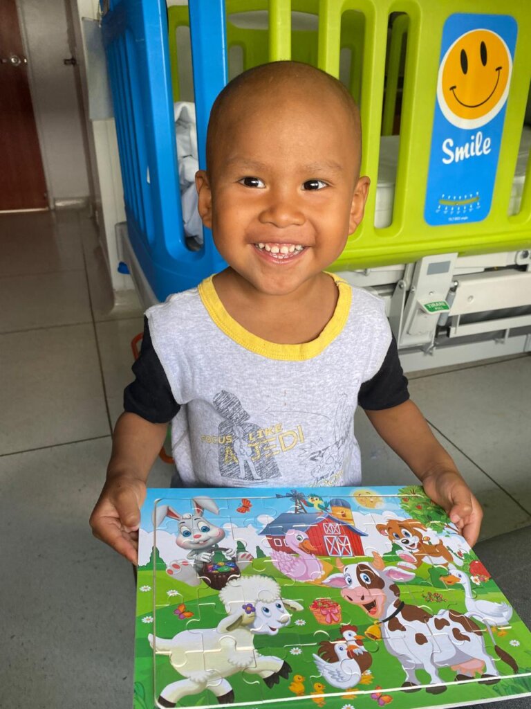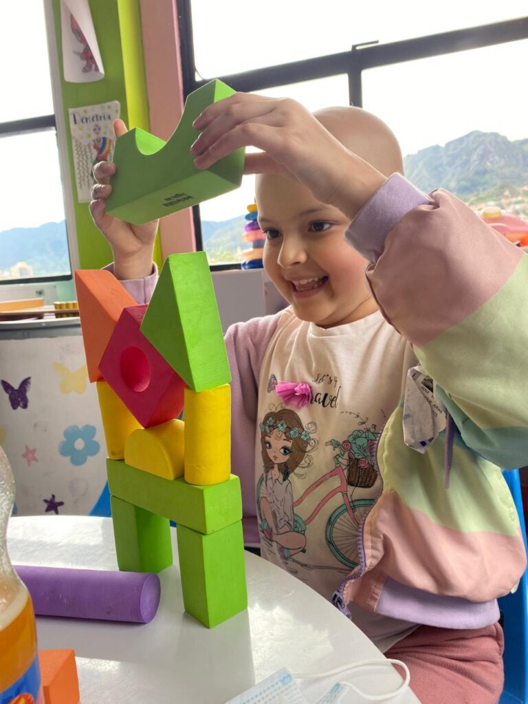 The hospitalized patients receive notebooks, pencils, and crayons to get ahead with their schoolwork, and thus, through play, they continue their school life.