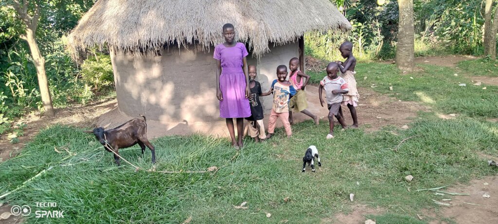 Mary is an orphaned girl currently in Senior Three. She received two goats from the project and managed them well. One goat gave birth to two kids, and the other gave birth to four. In total, she now has eight goats. She will return two goats to be passed on to another orphan-headed household.