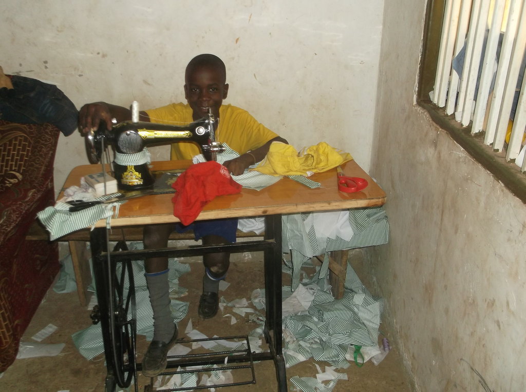 Lazarus, a Tanzanian pastor friend based in Arusha visited and gave us a sewing machine to train some children. GLS is now sewing their school uniforms and this will be reducing on big costs previously paid on uniforms. The saved small amount will now feed our GLH children. Thank you so much Lazarus…I attach a sowing machine photo with Ian learning.