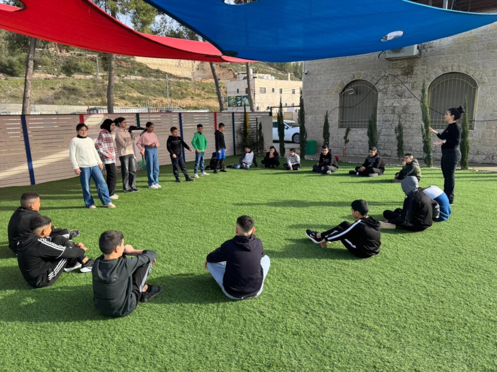 Over the past months, our psycho-social work through theatre has continued, even as access to schools has been repeatedly disrupted. Our trainers adapted immediately, shifting sessions into community spaces such as the village of Ein Sinya, ensuring that young people could still gather, move, and express what they are carrying. At the same time, we continued our work with persons with disabilities at Mountain Stair, where creativity becomes not only a tool for expression, but a way of reclaiming presence and agency.