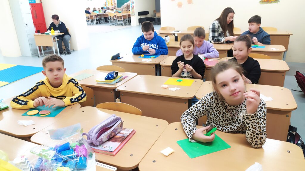 Creative workshops complemented therapeutic sessions, offering children safe, hands-on ways to process their emotions. They created anti-stress toys, string art, felt figures, candle holders titled “Warmth Lives Here,” patriotic keychains, and affirmation paintings.